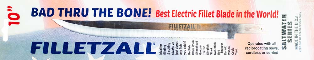 Developed by offshore charter captain Paul Bates, Filletzall® blades are built for anglers who process a lot of fish and want speed, durability, and clean cuts—without burning through lightweight electric fillet knives. Available in multiple lengths for different fish sizes, these blades fit all standard reciprocating saws and are trusted by both recreational anglers and commercial operations.